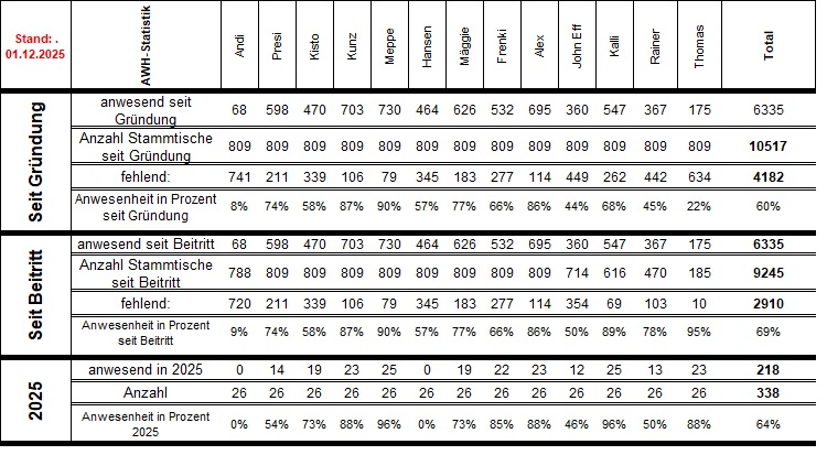 Erfolge, Ruhm und Ehre des Stammtisches!| Jahr | Name | Prozent | Rang |